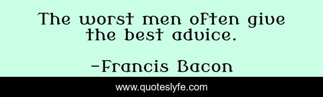 This page presents the quote "The worst men often give the best advice.". Author of this quote is Francis Bacon. This quote is about advice, men, worst,.