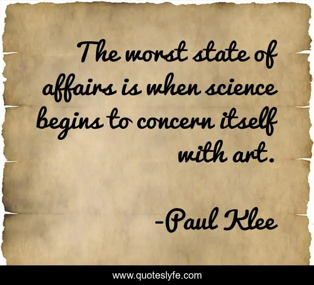 This page presents the quote "The worst state of affairs is when science begins to concern itself with art.". Author of this quote is Paul Klee. This quote is about science, state, worst,.