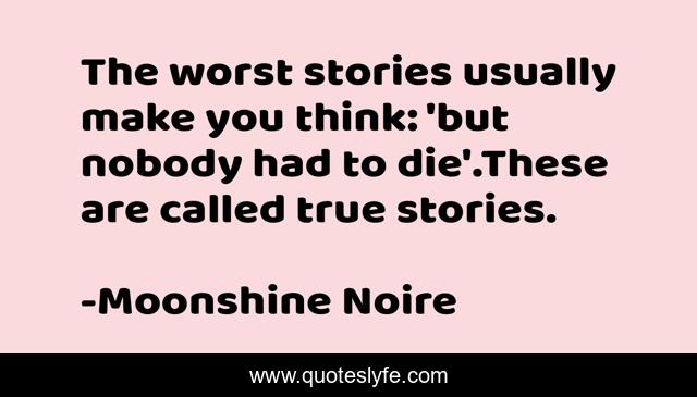 This page presents the quote "The worst stories usually make you think: 'but nobody had to die'.These are called true stories.". Author of this quote is Moonshine Noire. This quote is about life, death, horror, disease, true-story, reality, nightmares, society, murder,.