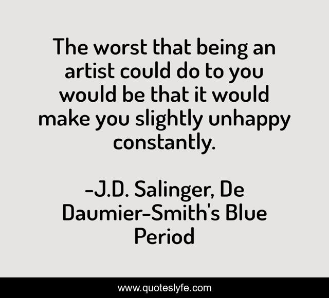 This page presents the quote "The worst that being an artist could do to you would be that it would make you slightly unhappy constantly.". Author of this quote is J.D. Salinger, De Daumier-Smith's Blue Period. .