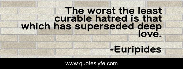 This page presents the quote "The worst the least curable hatred is that which has superseded deep love.". Author of this quote is Euripides. .