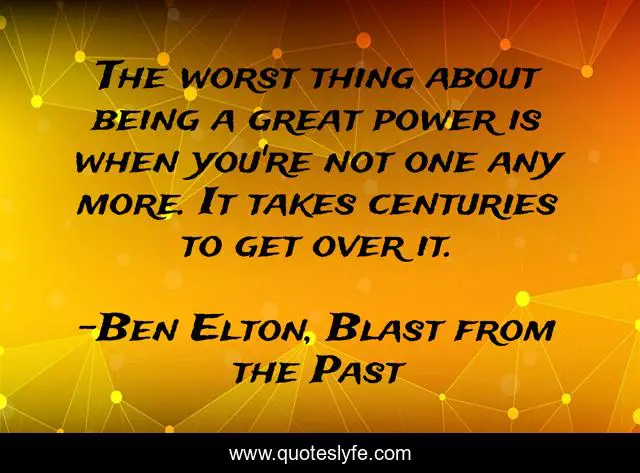 This page presents the quote "The worst thing about being a great power is when you're not one any more. It takes centuries to get over it.". Author of this quote is Ben Elton, Blast from the Past. .
