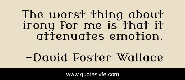 This page presents the quote "The worst thing about irony for me is that it attenuates emotion.". Author of this quote is David Foster Wallace. .