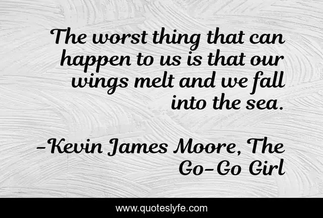 This page presents the quote "The worst thing that can happen to us is that our wings melt and we fall into the sea.". Author of this quote is Kevin James Moore, The Go-Go Girl. This quote is about chances, self-belief, trying, hope,.