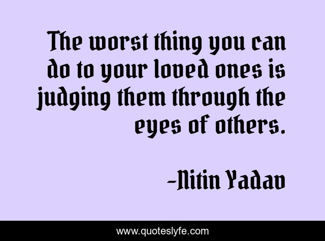 This page presents the quote "The worst thing you can do to your loved ones is judging them through the eyes of others.". Author of this quote is Nitin Yadav. This quote is about eyes, life, worst-thing, judging,.