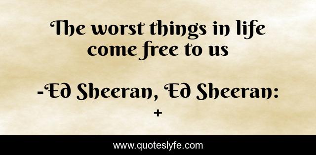 "Ed Sheeran, Ed Sheeran: + Quotes." Quoteslyfe.com, 2025. Fri. 05 Dec. 2025. <https://www.quoteslyfe.com/quote/The-worst-things-in-life-come-free-248059>.