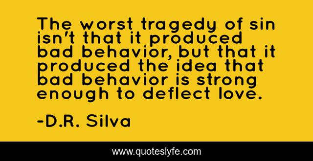 This page presents the quote "The worst tragedy of sin isn't that it produced bad behavior, but that it produced the idea that bad behavior is strong enough to deflect love.". Author of this quote is D.R. Silva. This quote is about love, christianity, religion, church, sin, forgiveness, tragedy, affection,.