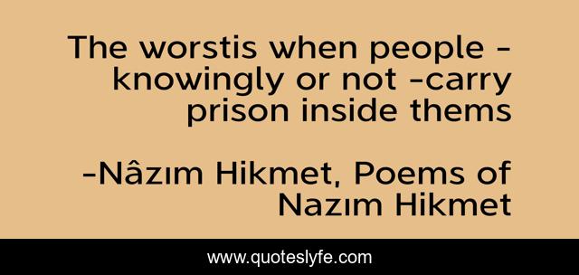 This page presents the quote "The worstis when people - knowingly or not -carry prison inside thems". Author of this quote is Nâzım Hikmet, Poems of Nazım Hikmet. This quote is about mental-chains, prison,.