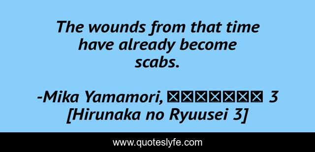 This page presents the quote "The wounds from that time have already become scabs.". Author of this quote is Mika Yamamori, ひるなかの流星 3 [Hirunaka no Ryuusei 3]. This quote is about heartache, loss, love, breakup, pain, affection,.