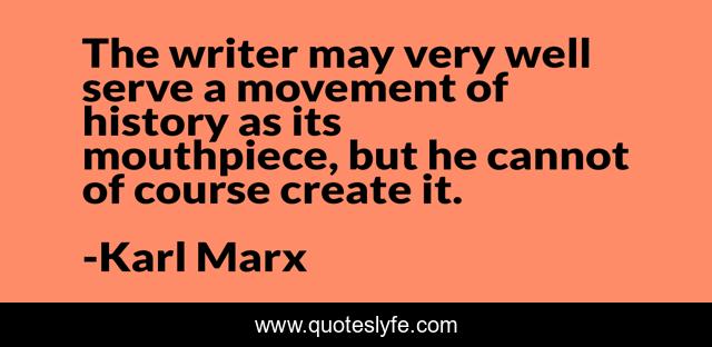 This page presents the quote "The writer may very well serve a movement of history as its mouthpiece, but he cannot of course create it.". Author of this quote is Karl Marx. This quote is about well, create, serve,.