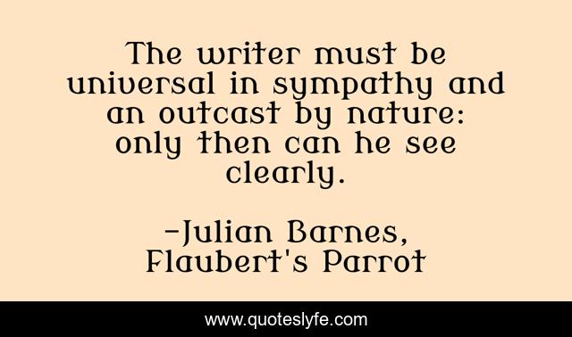 "Julian Barnes, Flaubert's Parrot Quotes." Quoteslyfe.com, 2025. Sun. 07 Dec. 2025. <https://www.quoteslyfe.com/quote/The-writer-must-be-universal-in-sympathy-27133>.