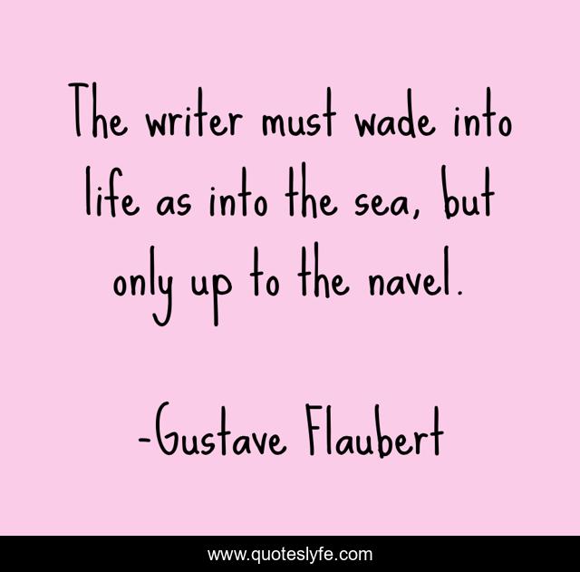This page presents the quote "The writer must wade into life as into the sea, but only up to the navel.". Author of this quote is Gustave Flaubert. This quote is about writers, creativity, writing,.