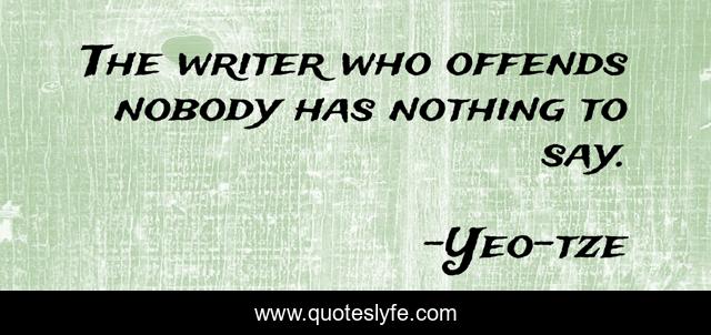 This page presents the quote "The writer who offends nobody has nothing to say.". Author of this quote is Yeo-tze. .