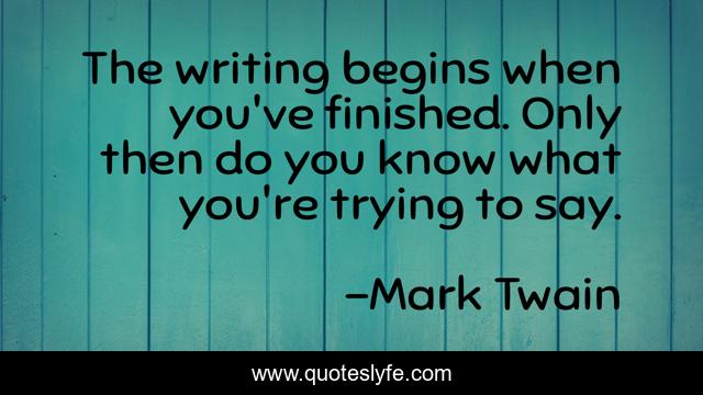 This page presents the quote "The writing begins when you've finished. Only then do you know what you're trying to say.". Author of this quote is Mark Twain. .