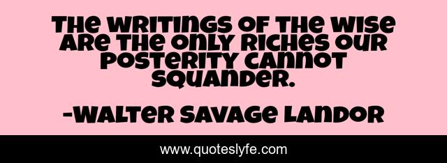 This page presents the quote "The writings of the wise are the only riches our posterity cannot squander.". Author of this quote is Walter Savage Landor. .