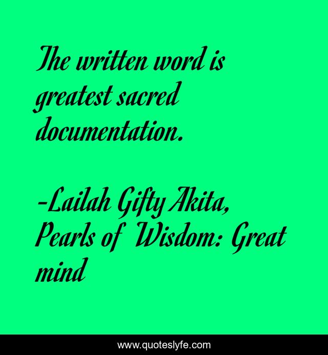 "Lailah Gifty Akita, Pearls of Wisdom: Great mind Quotes." Quoteslyfe.com, 2025. Fri. 05 Dec. 2025. <https://www.quoteslyfe.com/quote/The-written-word-is-greatest-sacred-documentation-70857>.