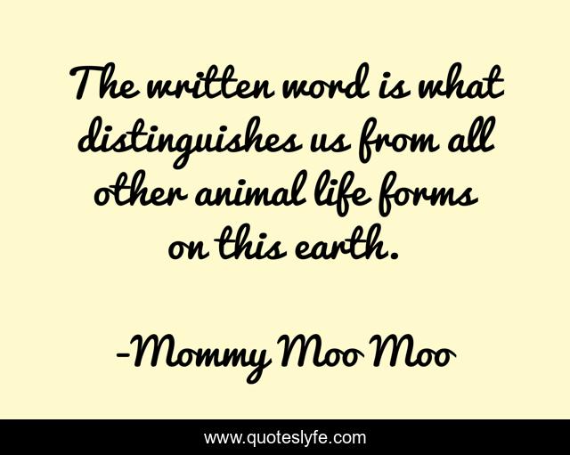 This page presents the quote "The written word is what distinguishes us from all other animal life forms on this earth.". Author of this quote is Mommy Moo Moo. This quote is about language, writing,.