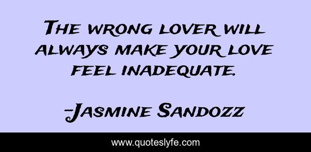 This page presents the quote "The wrong lover will always make your love feel inadequate.". Author of this quote is Jasmine Sandozz. This quote is about relationships, love, emotions, affection,.