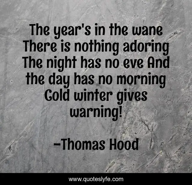 This page presents the quote "The year's in the wane There is nothing adoring The night has no eve And the day has no morning Cold winter gives warning!". Author of this quote is Thomas Hood. .
