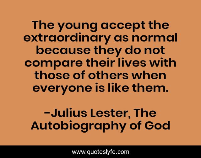 "Julius Lester, The Autobiography of God Quotes." Quoteslyfe.com, 2025. Mon. 08 Dec. 2025. <https://www.quoteslyfe.com/quote/The-young-accept-the-extraordinary-as-normal-209229>.
