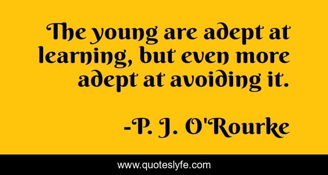 This page presents the quote "The young are adept at learning, but even more adept at avoiding it.". Author of this quote is P. J. O'Rourke. This quote is about even, avoiding, young,.