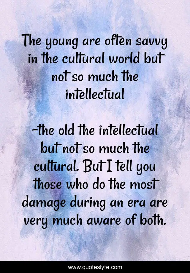 "the old the intellectual but not so much the cultural. But I tell you those who do the most damage during an era are very much aware of both. Quotes." Quoteslyfe.com, 2025. Mon. 08 Dec. 2025. <https://www.quoteslyfe.com/quote/The-young-are-often-savvy-in-the-161104>.