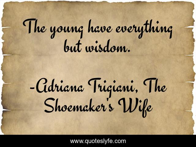 "Adriana Trigiani, The Shoemaker's Wife Quotes." Quoteslyfe.com, 2025. Fri. 05 Dec. 2025. <https://www.quoteslyfe.com/quote/The-young-have-everything-but-wisdom-98619>.