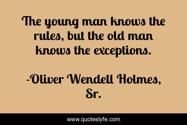 This page presents the quote "The young man knows the rules, but the old man knows the exceptions.". Author of this quote is Oliver Wendell Holmes, Sr.. This quote is about rules, old man, man,.