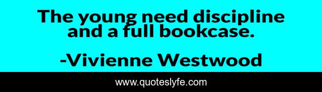 This page presents the quote "The young need discipline and a full bookcase.". Author of this quote is Vivienne Westwood. This quote is about youth, books,.