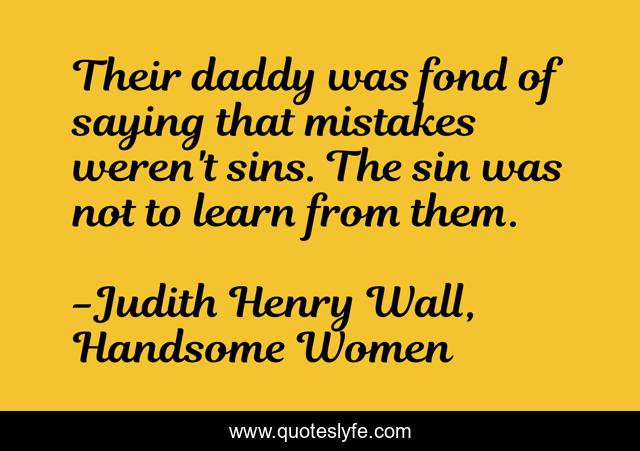 This page presents the quote "Their daddy was fond of saying that mistakes weren't sins. The sin was not to learn from them.". Author of this quote is Judith Henry Wall, Handsome Women. This quote is about enthusiasm, psychology, inspirational, self-help,.