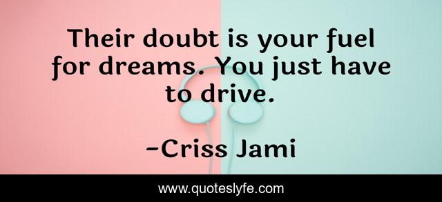 This page presents the quote "Their doubt is your fuel for dreams. You just have to drive.". Author of this quote is Criss Jami. This quote is about envy, car, motivational, jealousy, drive, encouragement, pursue-your-dreams, doubt, optimistic,.