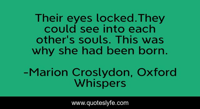 This page presents the quote "Their eyes locked.They could see into each other's souls. This was why she had been born.". Author of this quote is Marion Croslydon, Oxford Whispers. This quote is about new-adult, historical-fiction, paranormal,.