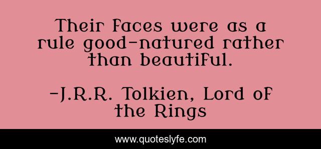 This page presents the quote "Their faces were as a rule good-natured rather than beautiful.". Author of this quote is J.R.R. Tolkien, Lord of the Rings. This quote is about kind, good, hobbits, beauty,.