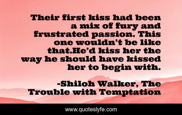 This page presents the quote "Their first kiss had been a mix of fury and frustrated passion. This one wouldn’t be like that.He’d kiss her the way he should have kissed her to begin with.". Author of this quote is Shiloh Walker, The Trouble with Temptation. This quote is about contemporary, contemporary-romance,.