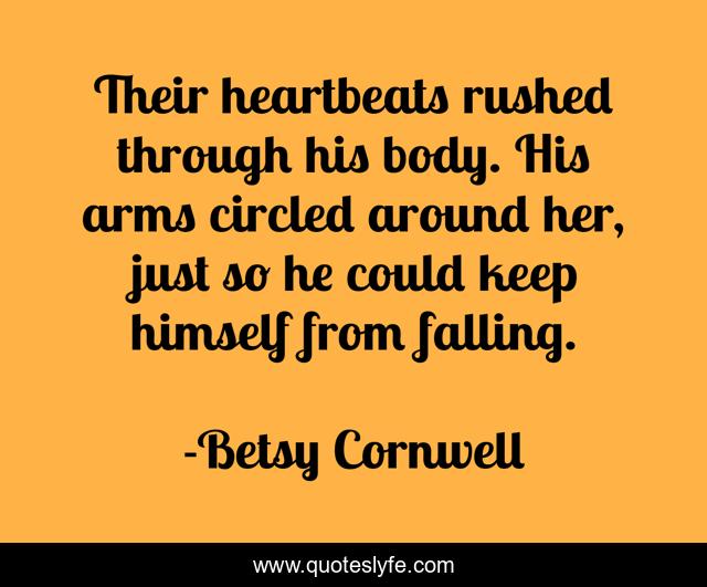 This page presents the quote "Their heartbeats rushed through his body. His arms circled around her, just so he could keep himself from falling.". Author of this quote is Betsy Cornwell. This quote is about tides, feelings,.
