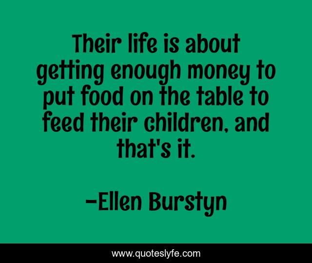 This page presents the quote "Their life is about getting enough money to put food on the table to feed their children, and that's it.". Author of this quote is Ellen Burstyn. This quote is about money, life, children,.