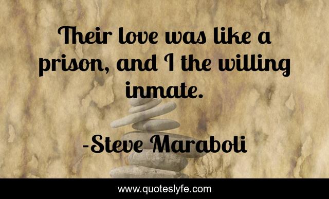 This page presents the quote "Their love was like a prison, and I the willing inmate.". Author of this quote is Steve Maraboli. This quote is about inmate, relationships, love, affection, prison,.