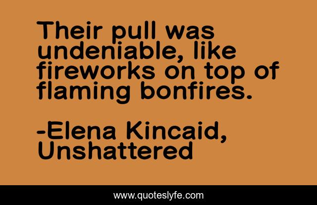 "Elena Kincaid, Unshattered Quotes." Quoteslyfe.com, 2025. Sat. 06 Dec. 2025. <https://www.quoteslyfe.com/quote/Their-pull-was-undeniable-like-fireworks-on-215697>.