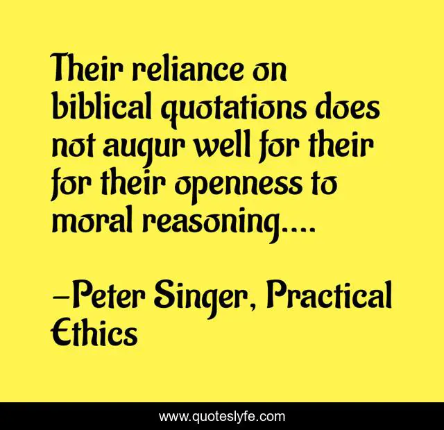 "Peter Singer, Practical Ethics Quotes." Quoteslyfe.com, 2025. Fri. 05 Dec. 2025. <https://www.quoteslyfe.com/quote/Their-reliance-on-biblical-quotations-does-not-205467>.