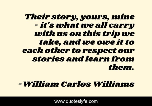 This page presents the quote "Their story, yours, mine - it's what we all carry with us on this trip we take, and we owe it to each other to respect our stories and learn from them.". Author of this quote is William Carlos Williams. .