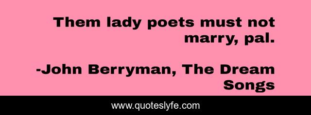 "John Berryman, The Dream Songs Quotes." Quoteslyfe.com, 2025. Tue. 09 Dec. 2025. <https://www.quoteslyfe.com/quote/Them-lady-poets-must-not-marry-pal-76596>.