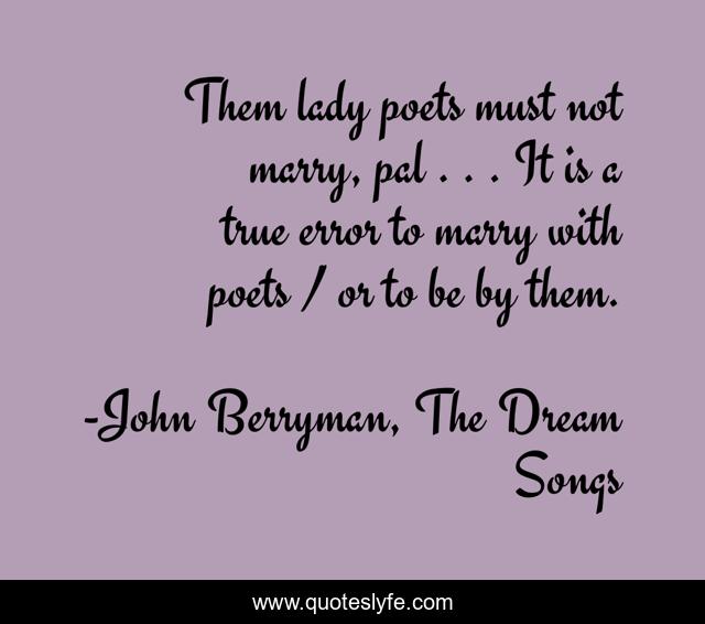 "John Berryman, The Dream Songs Quotes." Quoteslyfe.com, 2025. Mon. 08 Dec. 2025. <https://www.quoteslyfe.com/quote/Them-lady-poets-must-not-marry-pal-76736>.