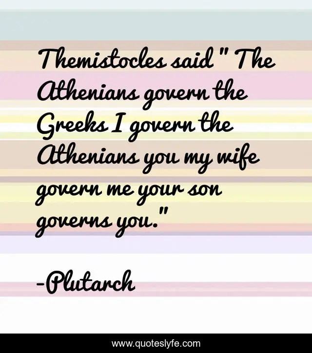 This page presents the quote "Themistocles said "The Athenians govern the Greeks I govern the Athenians you my wife govern me your son governs you."". Author of this quote is Plutarch. .