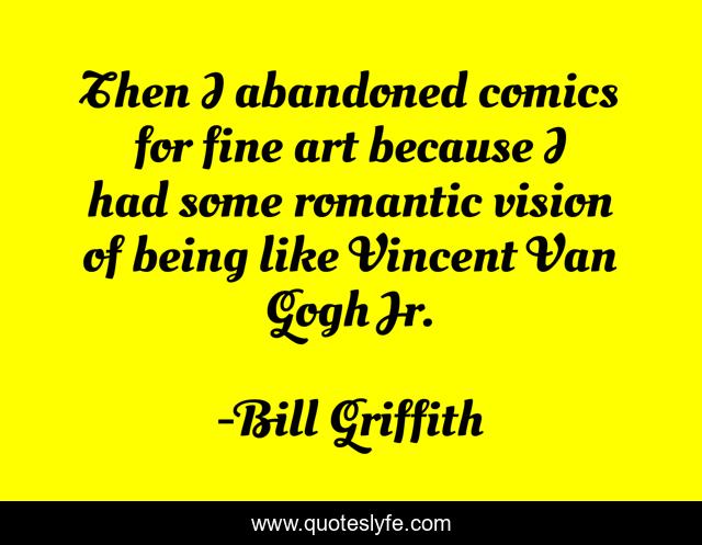 This page presents the quote "Then I abandoned comics for fine art because I had some romantic vision of being like Vincent Van Gogh Jr.". Author of this quote is Bill Griffith. This quote is about art, fine, vision,.