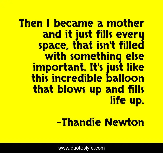 This page presents the quote "Then I became a mother and it just fills every space, that isn't filled with something else important. It's just like this incredible balloon that blows up and fills life up.". Author of this quote is Thandie Newton. This quote is about life, important, mother,.