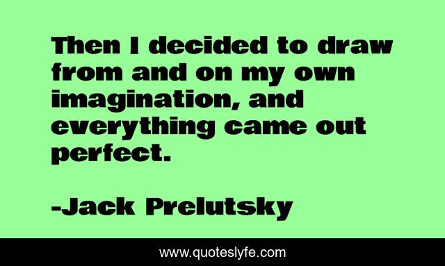 This page presents the quote "Then I decided to draw from and on my own imagination, and everything came out perfect.". Author of this quote is Jack Prelutsky. This quote is about perfect, everything, my own,.