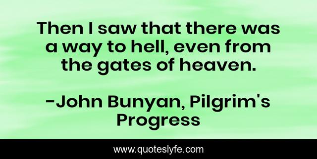 This page presents the quote "Then I saw that there was a way to hell, even from the gates of heaven.". Author of this quote is John Bunyan, Pilgrim's Progress. This quote is about hell, heaven,.