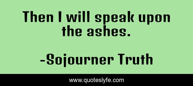 This page presents the quote "Then I will speak upon the ashes.". Author of this quote is Sojourner Truth. This quote is about freedom, women-s-rights, abolition,.