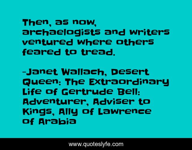 "Janet Wallach, Desert Queen: The Extraordinary Life of Gertrude Bell: Adventurer, Adviser to Kings, Ally of Lawrence of Arabia Quotes." Quoteslyfe.com, 2025. Sat. 06 Dec. 2025. <https://www.quoteslyfe.com/quote/Then-as-now-archaelogists-and-writers-ventured-70334>.