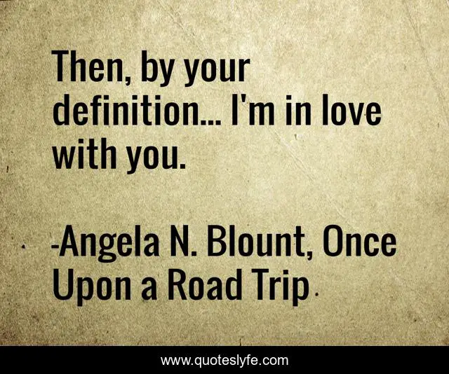 This page presents the quote "Then, by your definition... I'm in love with you.". Author of this quote is Angela N. Blount, Once Upon a Road Trip. This quote is about romance, love, love-story, affection,.